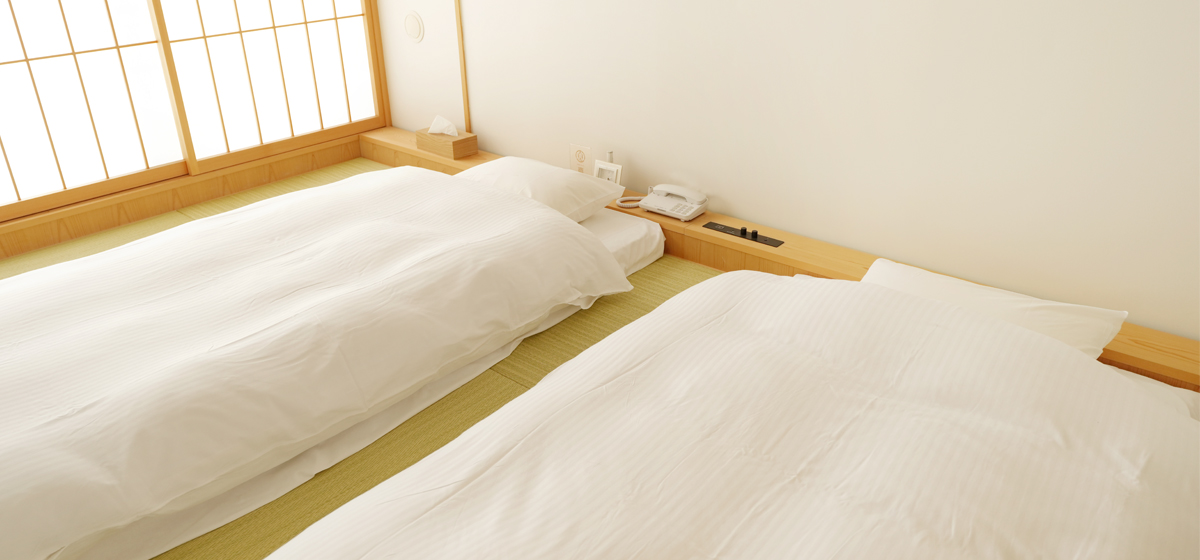 落ち着いた和モダンな雰囲気の和室で最大2名様までご利用いただけます。安らぎを感じる琉球畳でくつろぎ、旅の疲れを癒していただけるよう、シンプルな空間をご用意しました。