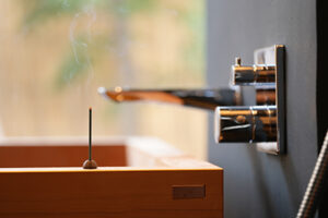 - 浴室設施配備天然檜木浴缸、淋浴設備及專屬日式庭園